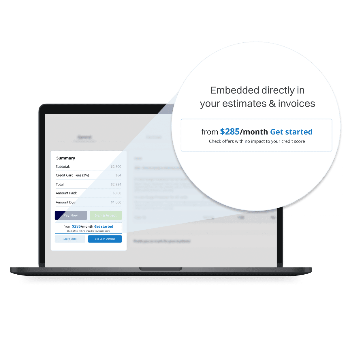 With Acorn Finance embedded your estimates, you can offer financing options right from your quotes—at no cost to you!