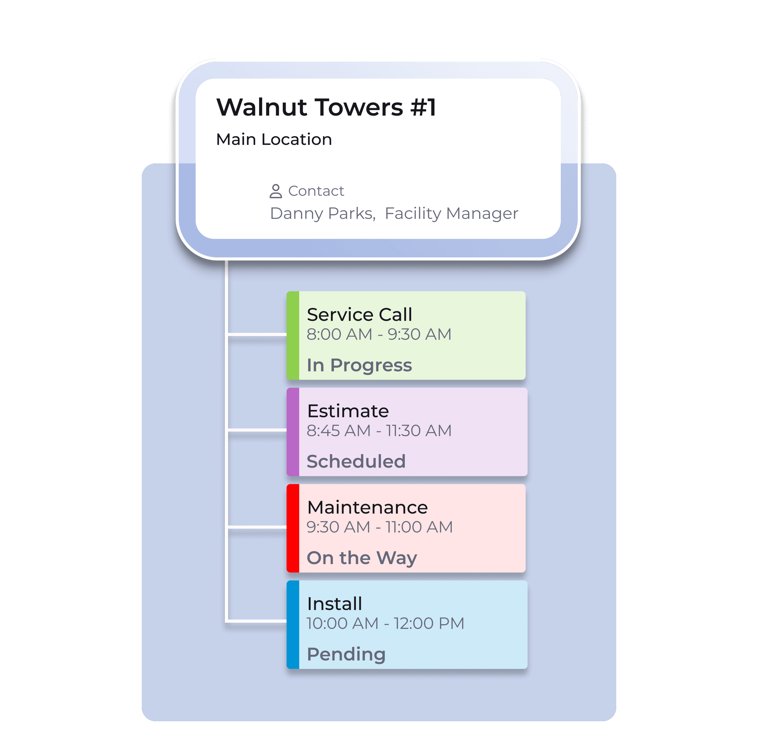 Easily track and manage businesses with multiple service locations under a single customer record.