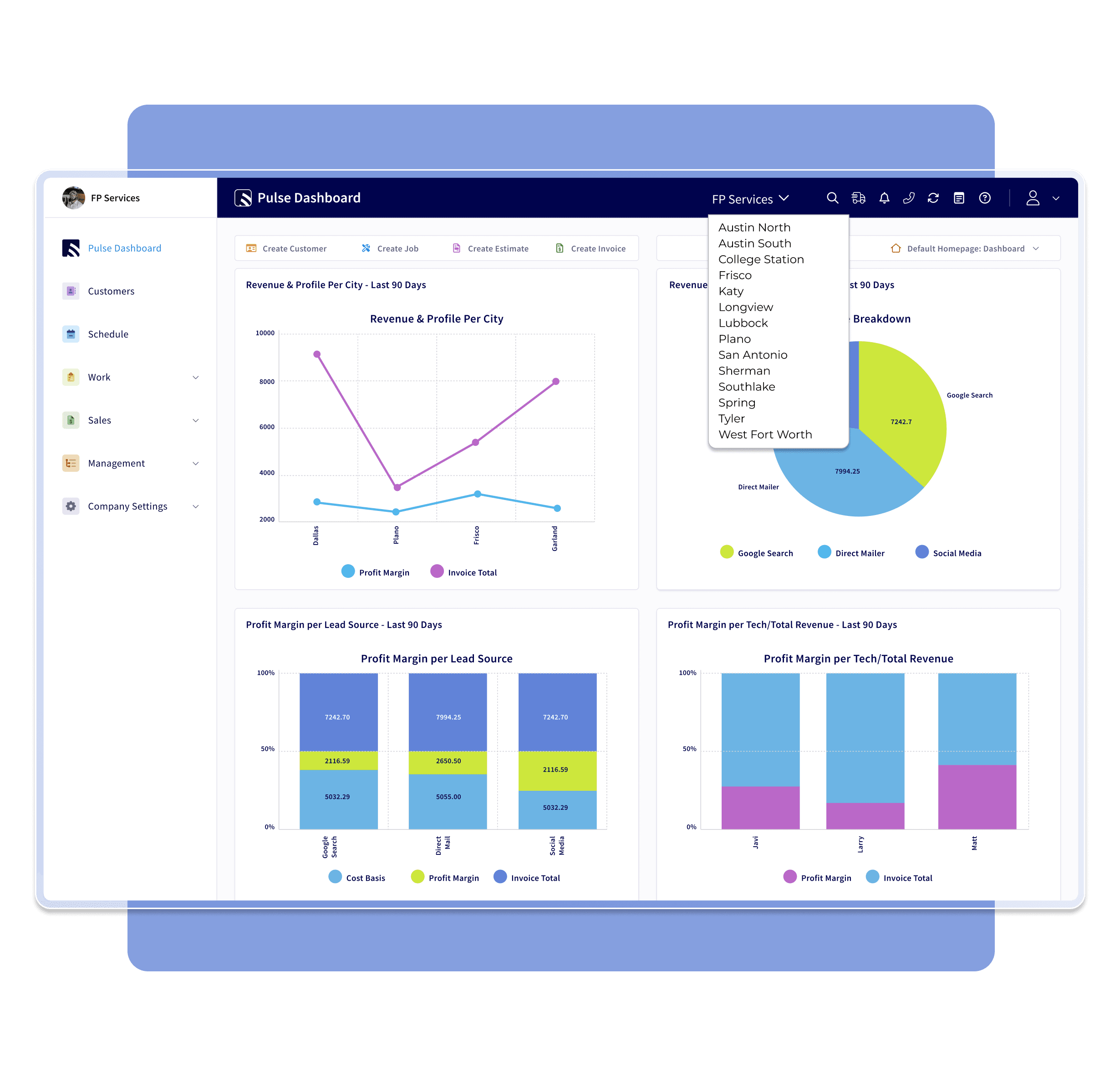 FieldPulse brings all your reporting into one place, so you can stop guessing, start growing, and make confident business decisions every day.