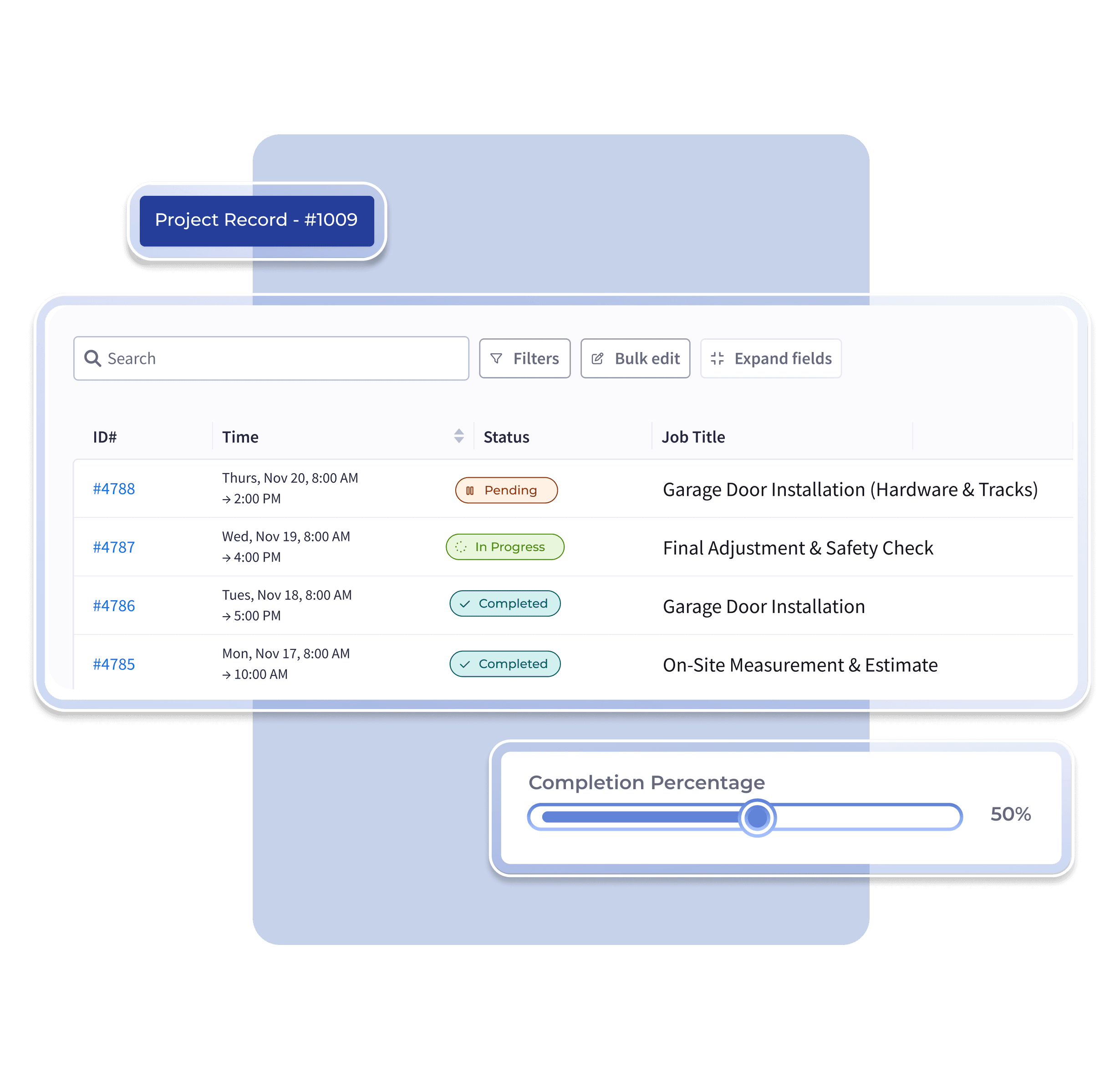 Mismanaged garage door jobs lead to wasted labor, missed deadlines, and expensive callbacks that cut into your margins. FieldPulse keeps tasks, timelines, and budgets aligned in one place, so your team delivers every job on time and without costly rework.