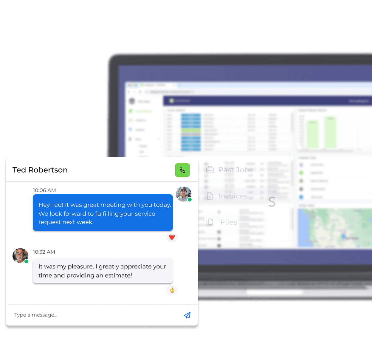 Two-Way Messaging: Chat with customers in real time to confirm job details, answer questions, and keep every interaction documented in one place.