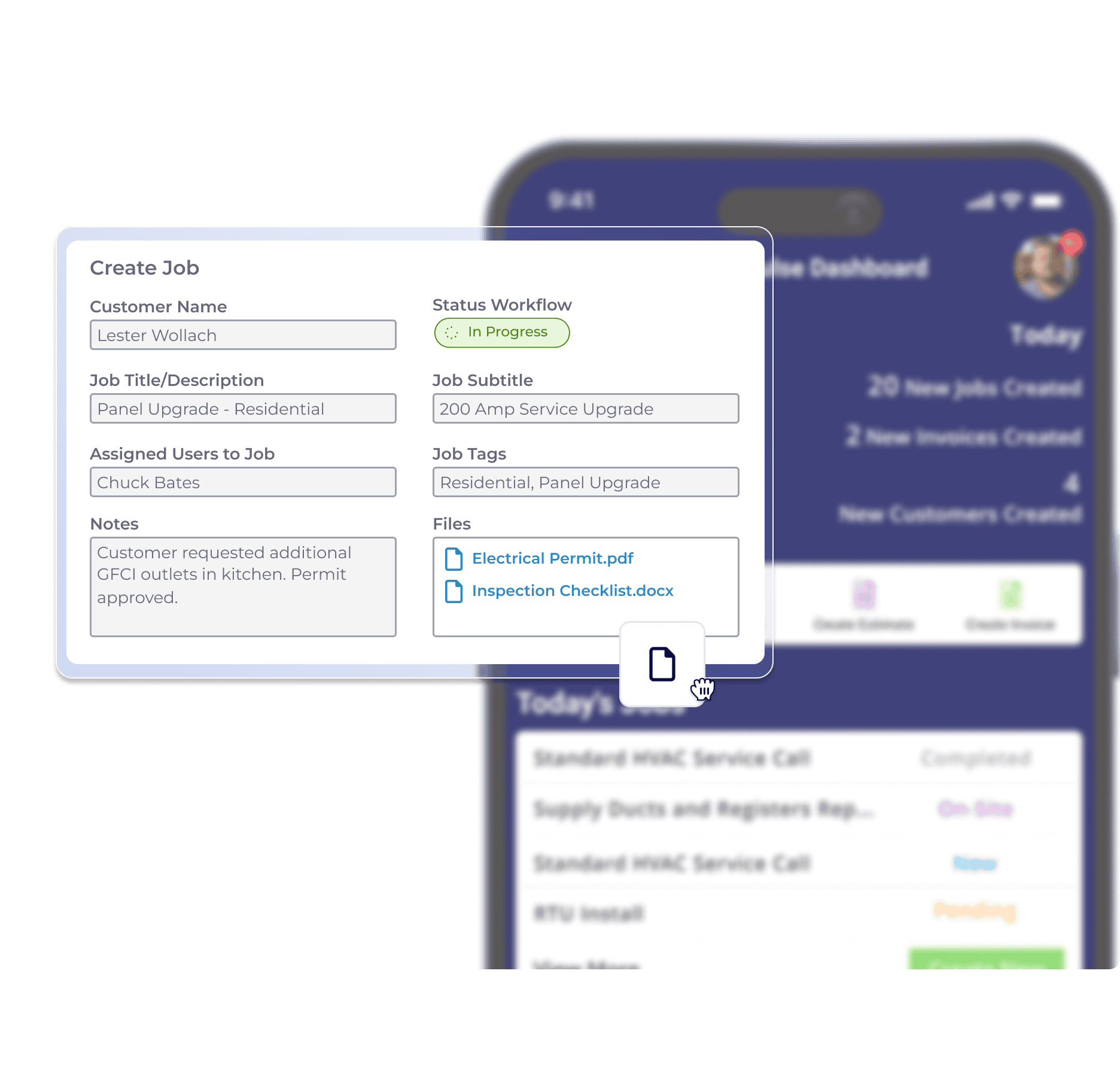 Real-Time Job Sync: Technicians instantly receive job assignments, updates, and customer info so they’re always working with the latest details.