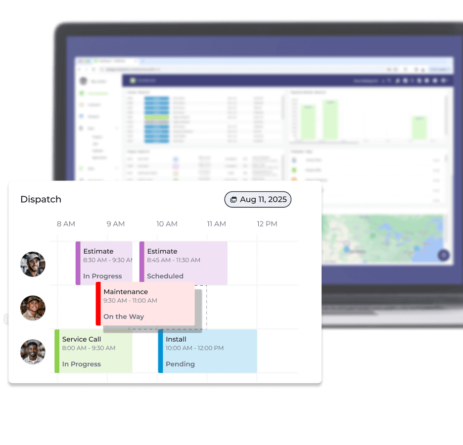 All-in-One Scheduling View: View jobs, techs, and time slots in a single dashboard so you can manage your day without confusion.