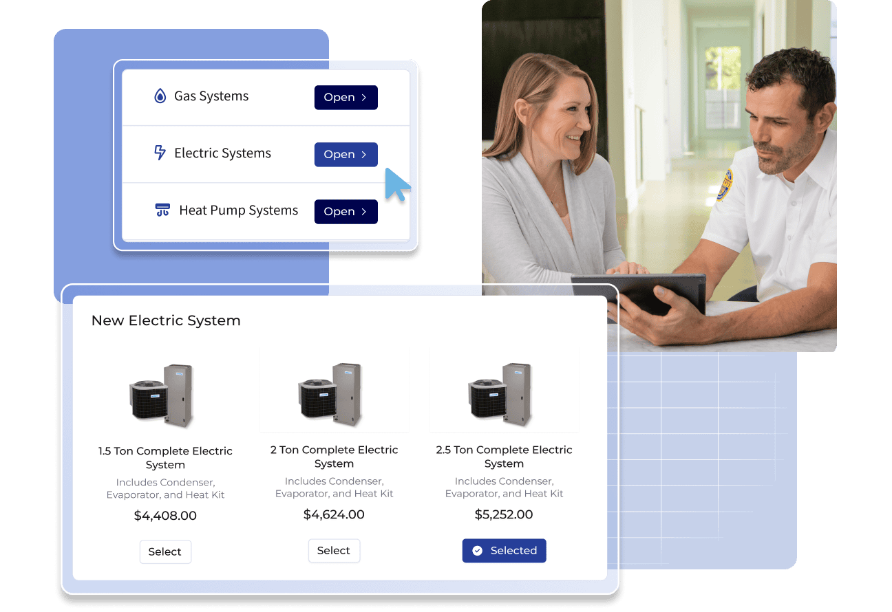HVAC proposal software is a digital tool that helps you create, send, and manage HVAC estimates with speed and accuracy. It lets HVAC technicians build professional quotes on-site using standardized pricing.