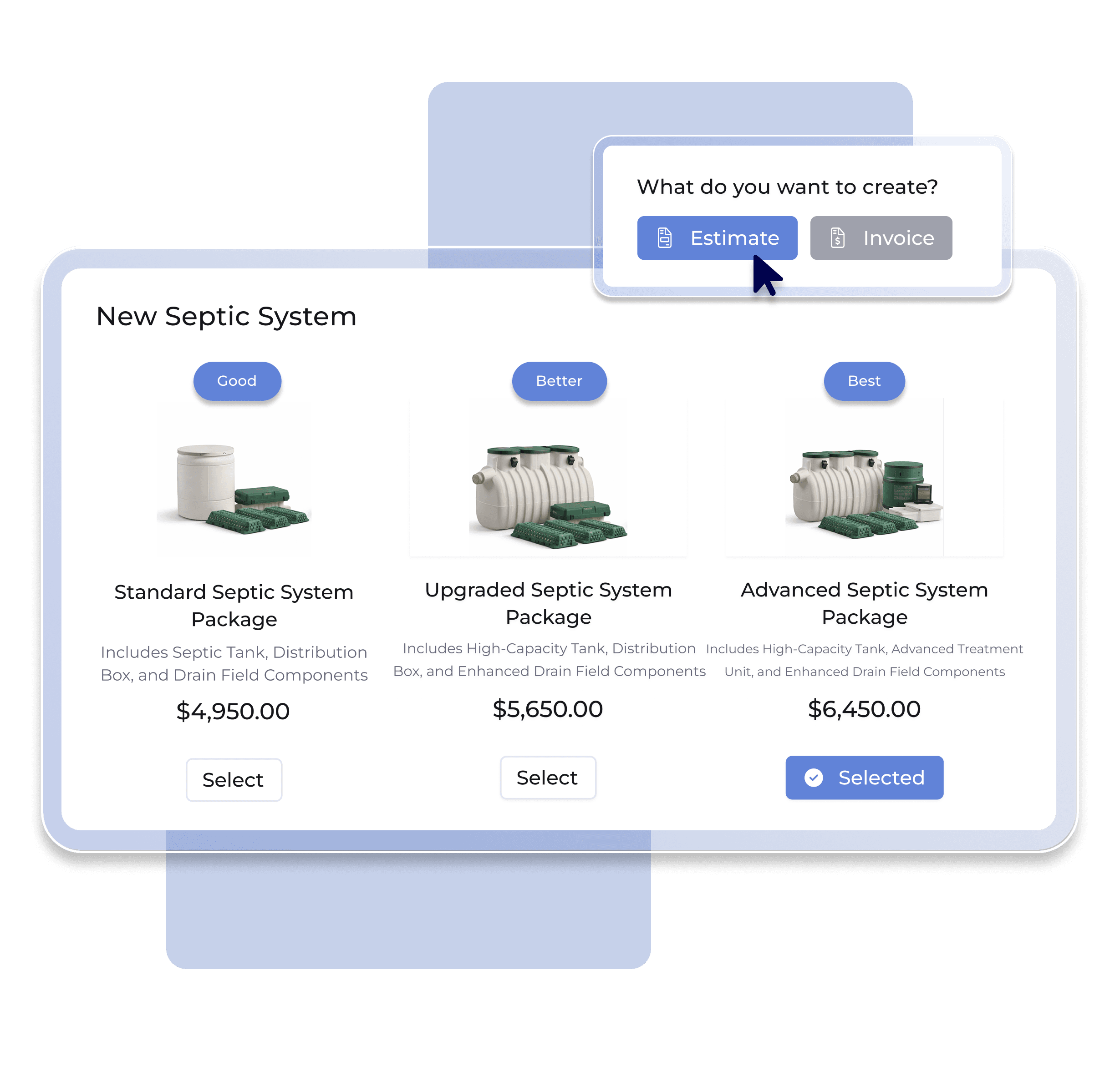 On-Site Estimate Creation: Create detailed estimates on-site for septic system repairs, installations, or routine maintenance, providing transparency to customers.